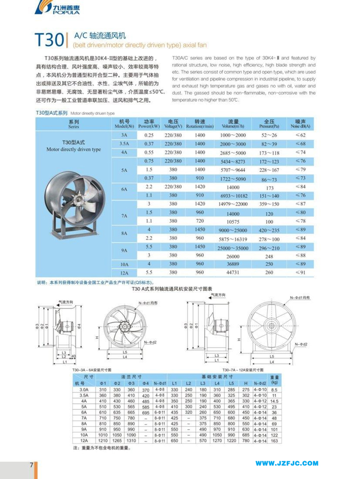 九洲風(fēng)機(jī)|T30A/C軸流通風(fēng)機(jī)(belt driven/motor diretly dnven type) axial fan