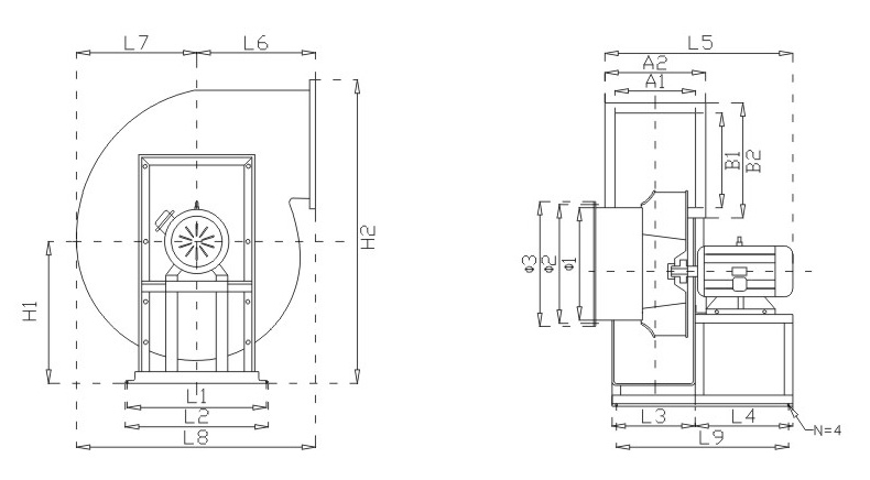 PP4-72A polypropylene centrifugal fan series The PP4-72 polypropylene centrifugal fan is made of polypropylene plate and heating die according to the metal 4-72 performance parameters. It is widely used in research, chemical, metallurgy, electronics, medicine, textile, instrumentation, electroplating, mining, school hotels, hotels, laboratories, environmental protection equipment and other industries for ventilation and ventilation to eliminate harmful gases such as acid and alkali. . However, it is not allowed to transport a corrosive gas such as a halogen derivative containing an aromatic compound, an aliphatic or an aromatic hydrocarbon, or a ketone. It has the characteristics of chemical corrosion resistance, aging resistance, small specific gravity, low mechanical vibration, low noise and stable operation. The gas to be transported is not allowed to contain viscous substances, dust and hard particles ≤150mg/m3, gas temperature 50°C, relative humidity ≤100%. And avoid sun exposure, there must be no heat source near the fan site.